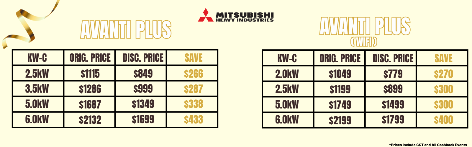 MITSUBISHI Heavy Industries Avanti Series Wifi 2.0KW/2.5KW/3.5KW/5.0KW Inverter SPLIT SYSTEM